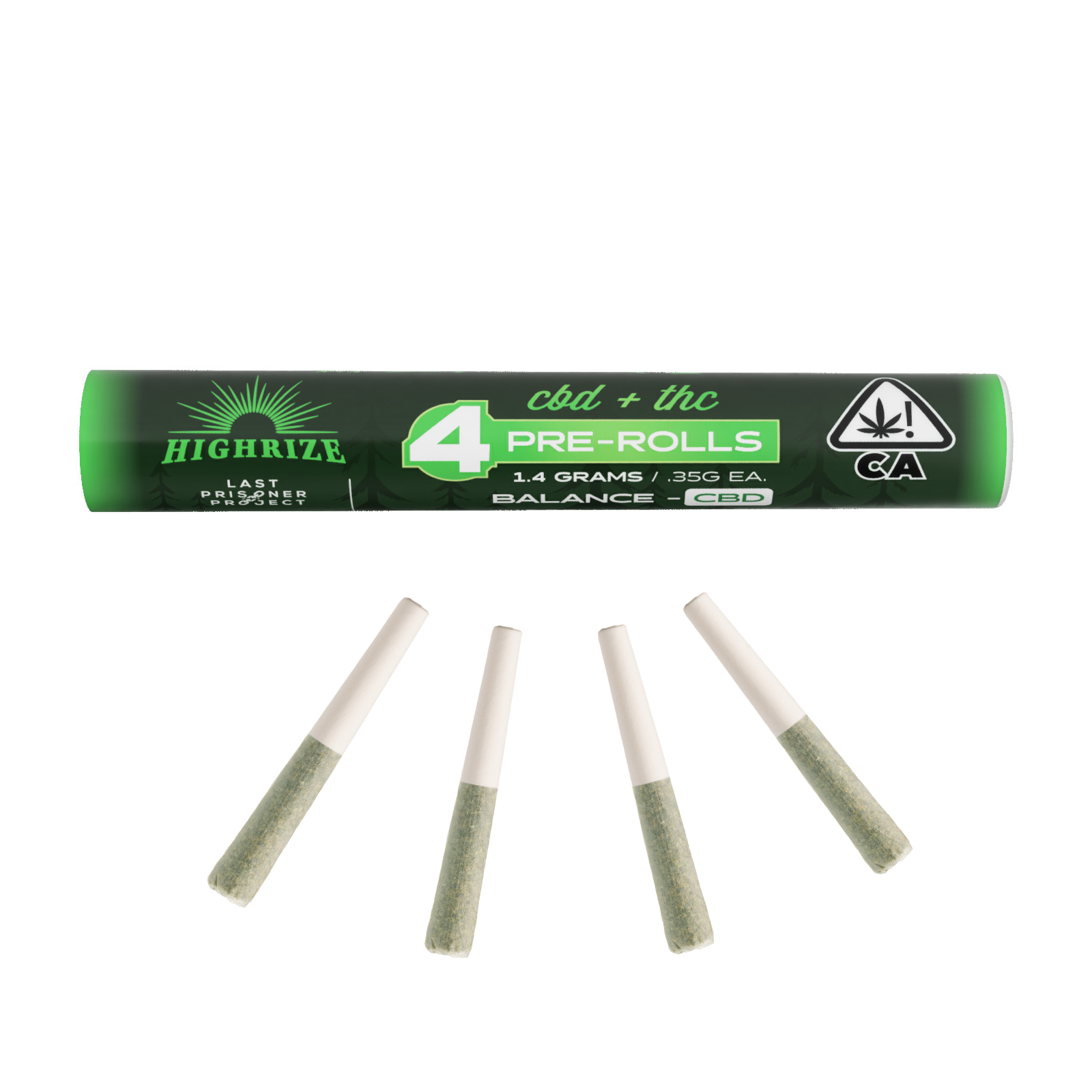 We like our CBD balanced with THC. 100% flower, no shake. Four .35 gram all flower deluxe cannabis pre-rolls with high levels of CBD, totaling 1.40 grams. Flower is hand selected with an eye on high CBD levels with enough THC to pack a punch.