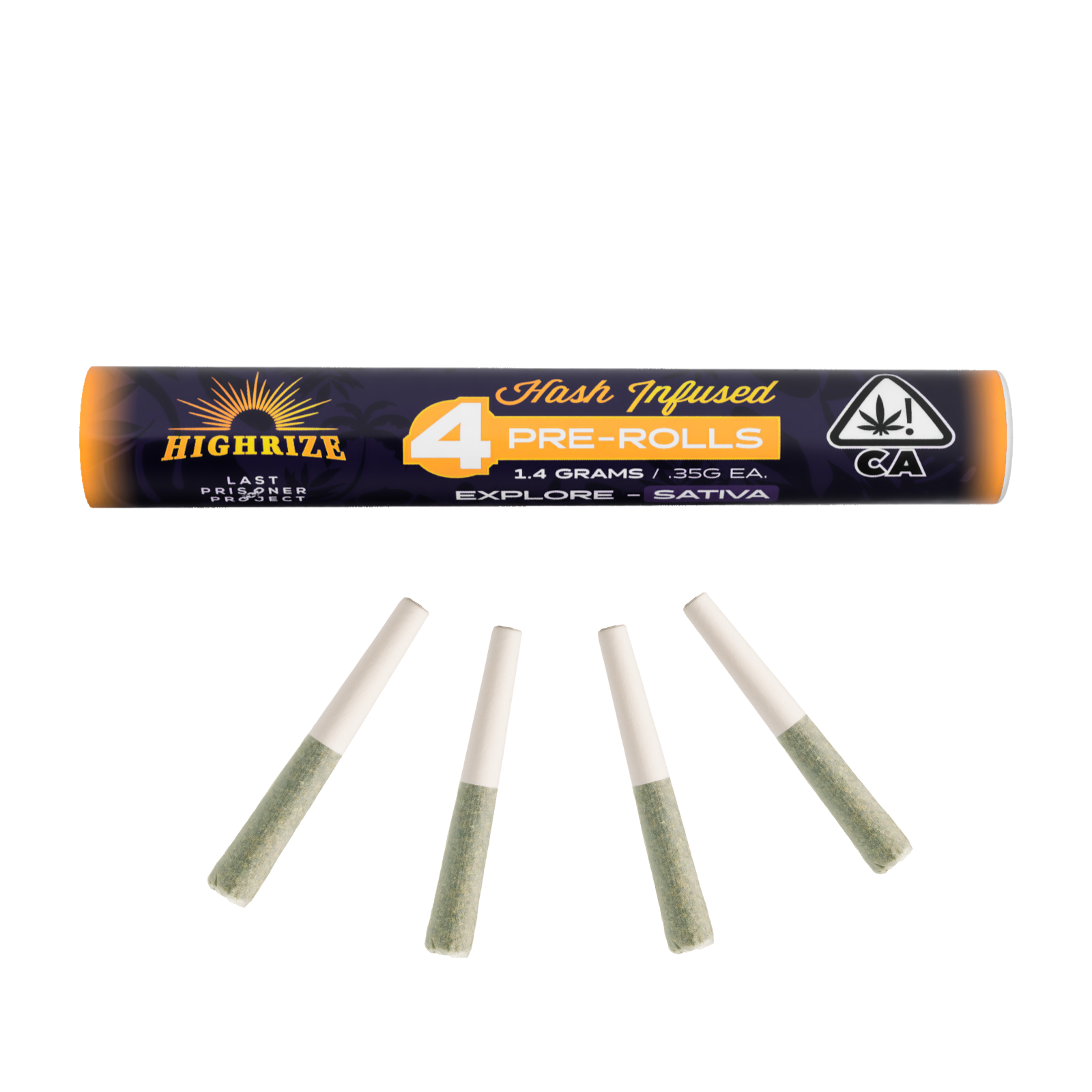 Four .35 gram all flower deluxe cannabis pre-rolls plus 15% ice water hash, totaling 1.40 grams. Pure ground flower, no shake, flower is hand selected, triple sifted, and infused with ice water hash sourced from trusted expert extractors.